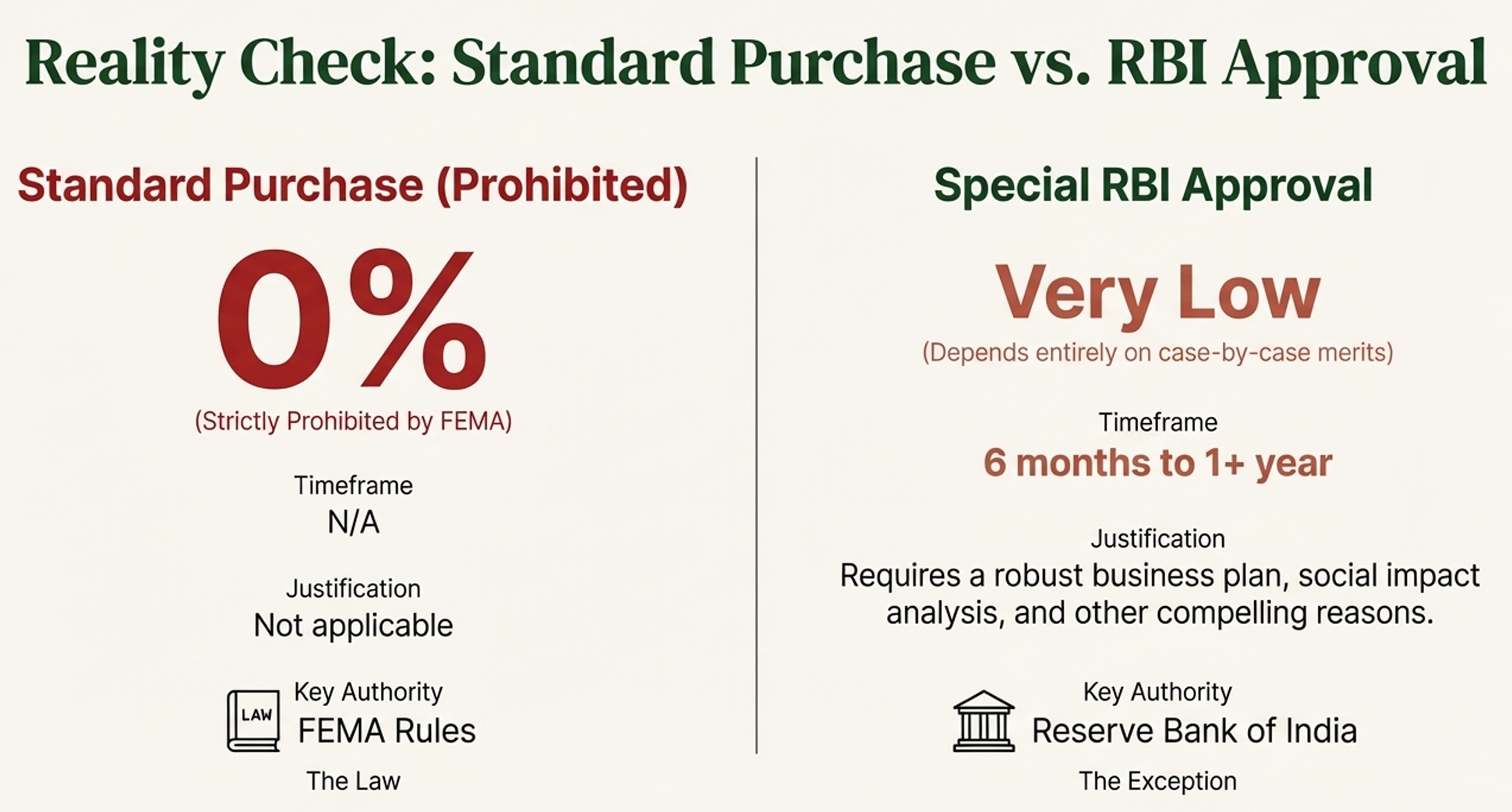 A: Yes, the RBI does have the legal authority to grant special permission, but this is not a right and such approval is granted only in rare and exceptional cases. An NRI must file a formal application with the RBI (typically through an Authorized Dealer Bank) under a “Prior Approval” route. Historically, such case-by-case approvals are very rare, though the RBI has residual discretionary power under FEMA.