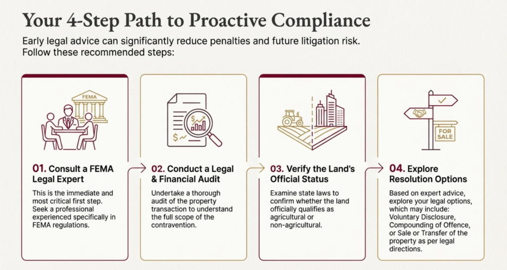 If an NRI has already purchased restricted land, proactive compliance is the safest approach. Legal options include exploring: